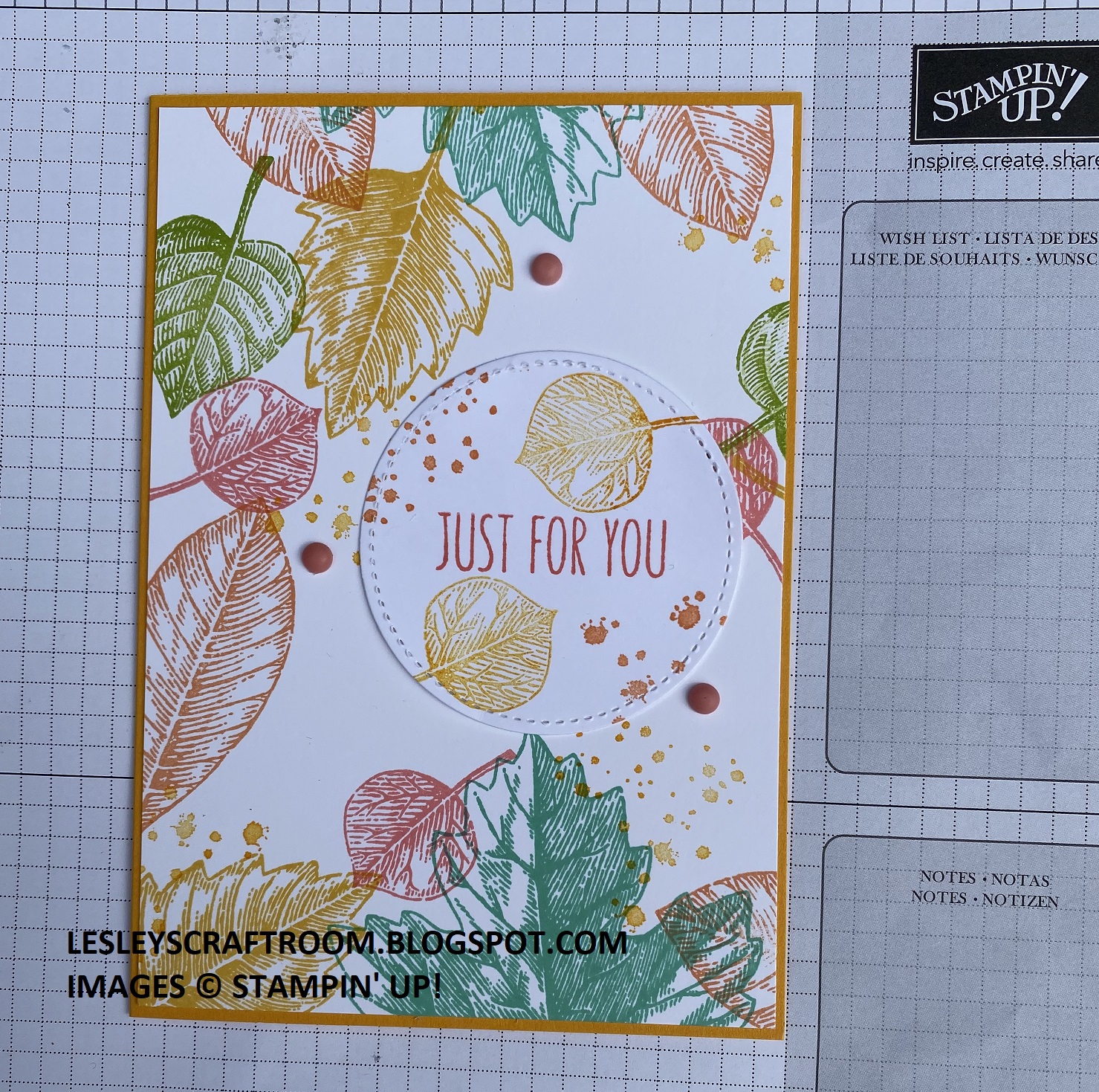 Wonderful leaves stamped in the gorgeous colours of autumn. I love the addition of splatters too. Great idea to stamp a large sheet and make multiple cards from it xxx